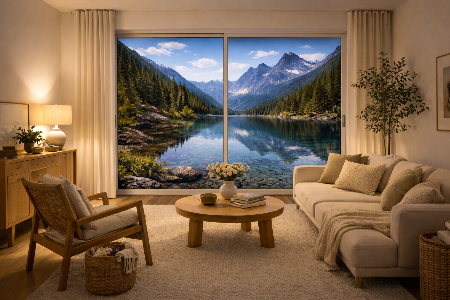 Salon avec vue sur la montagne