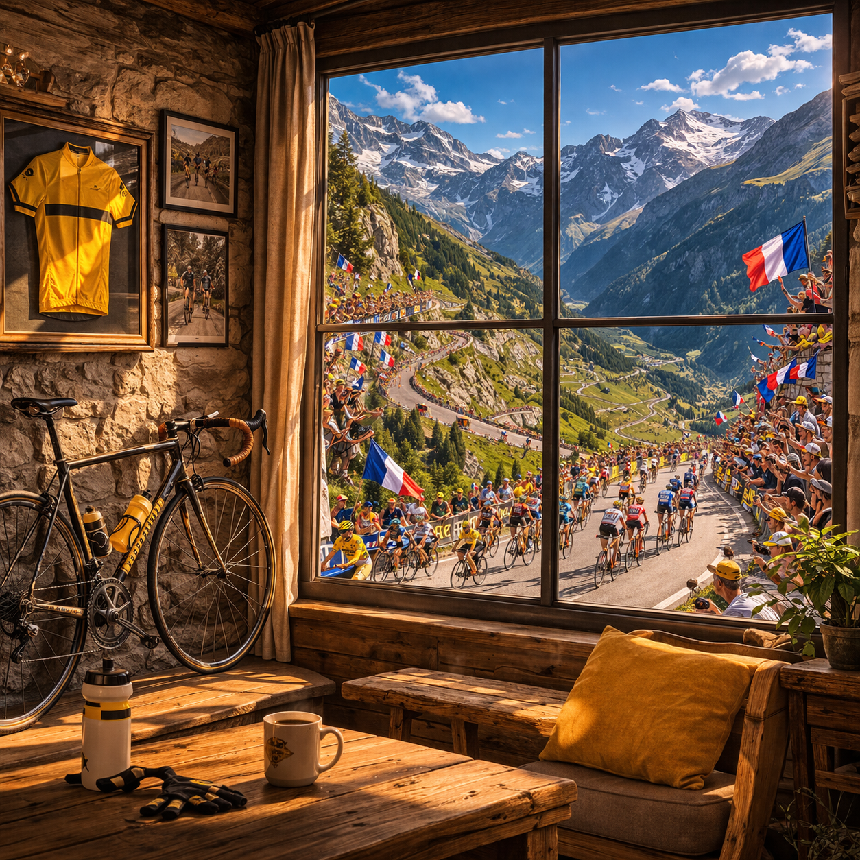 Vue sur une compétition de vélo en montage