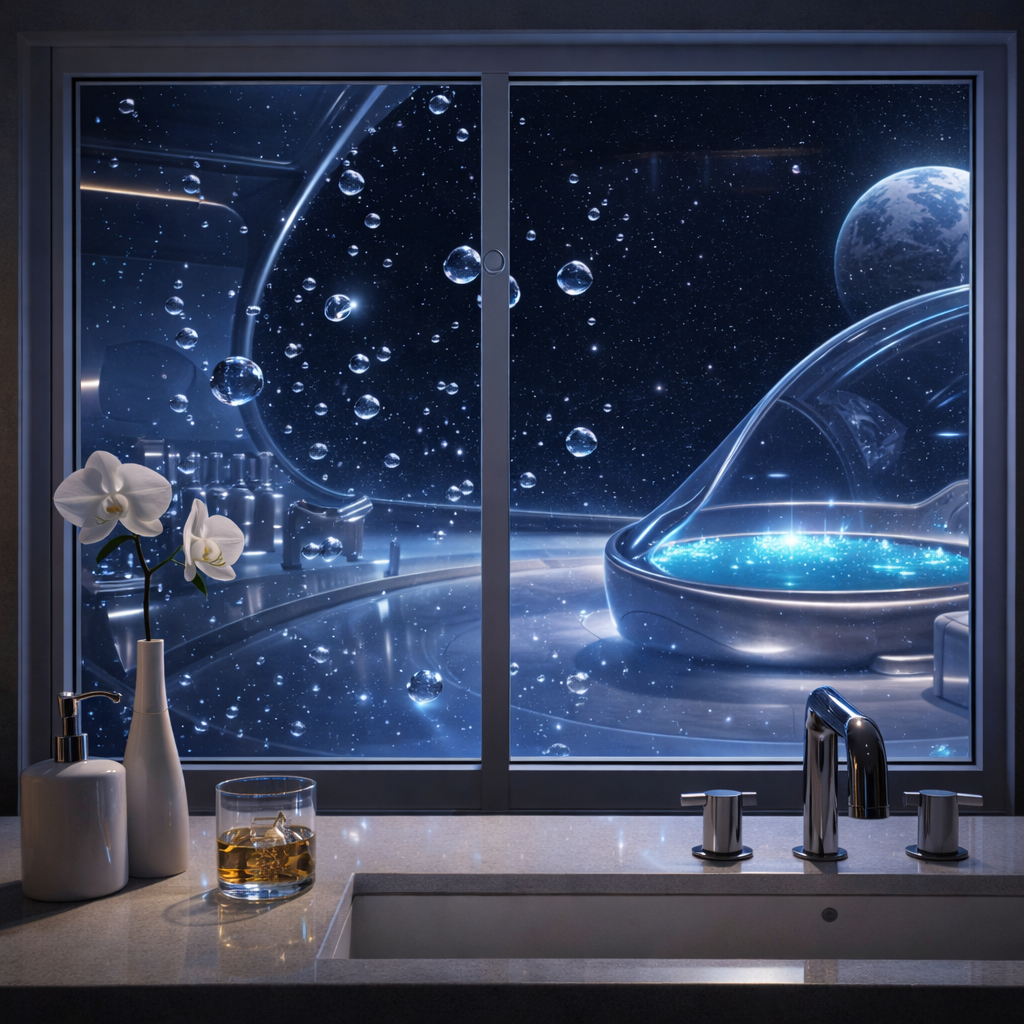 Vue sur une station spatiale avec salle de bainVue sur une station spatiale avec salle de bain